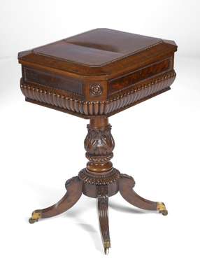 A late Regency mahogany sarcophagus teapoy