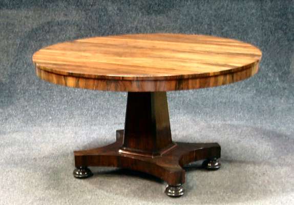 the circular top over plain frieze above tapering column with canted corners, quadruped base rasied on bun feet