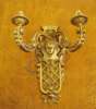 of shaped oblong form, decorated with floral swags, shell motifs and trellis work, a classical mask to centre, the double C-scroll branches with flared drip tray