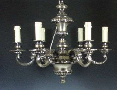 the urn shape stem with broad base, the S-scroll branches with acanthus decoration, and large drip trays