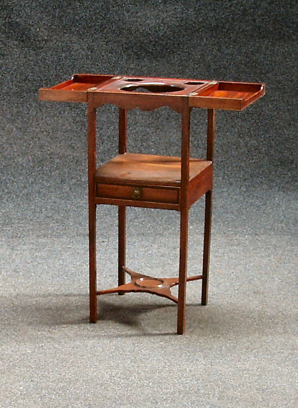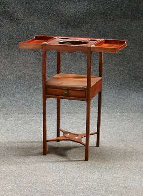 A George III mahogany and boxwood strung washstand