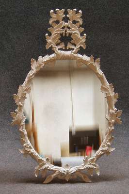 of allover oak leaf and acorn design, surmounted by an oak leaf ribbon design, plain glass