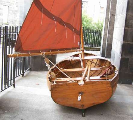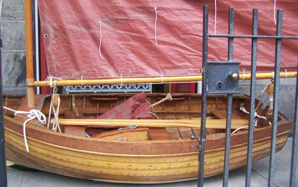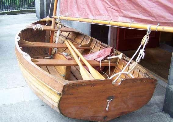 of traditional staved and pinned construction, complete with detachable mast and a pair of (later) oars