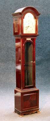 An Edwardian style mahogany and inlaid chiming longcase clock by A.Thomas, Airdrie