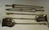 comprising: poker, tongs and shovel with brass lion sejant; and a part set of 19th century fire irons, with reeded handles (5)