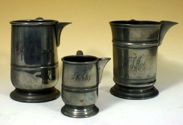 each with circular reeded body, scroll handle, VR marks and other marks (13)