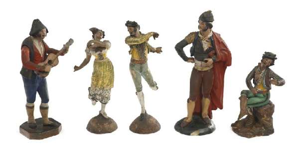 A pair of 19th century Neopolitan painted pottery figures