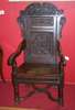 A Charles II carved oak panel back armchair