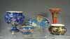 comprising: a red trumpet vase 'Worcester Birds' pattern, 2175, W & R mark, 20cm high; a blue bowl 'Mikado' pattern, 2364, W & R mark, 13cm wide; a black Carlton Cloisonne ware bowl 'Chinese Quail' pattern, 522, W & R mark, 16cm wide; an oval blue dish 'Crane and Willow' pattern, 23cm wide; and a blue footed rose bowl 'Prunus' pattern, W & R mark, 18cm high (5)