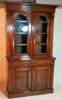 the projected moulded cornice over a plain frieze, two arched glazed doors enclosing shelves flanked by columns over a carved long drawer, two panelled cupboards, raised on plinth base