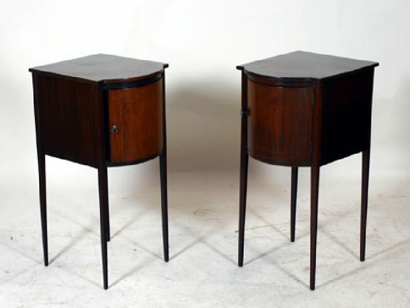 A matched pair of 19th century mahogany bowfront pot cabinets