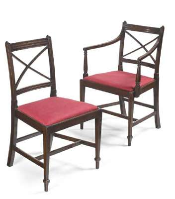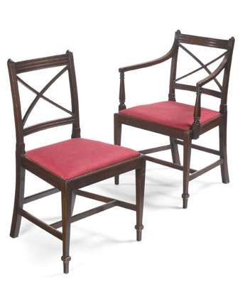 A set of eight 19th century mahogany 'cross-stick' dining chairs