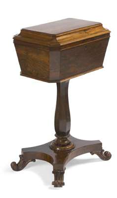 A Regency rosewood teapoy by J.D. Maclean, Dundee