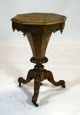 A Victorian walnut octagonal work table