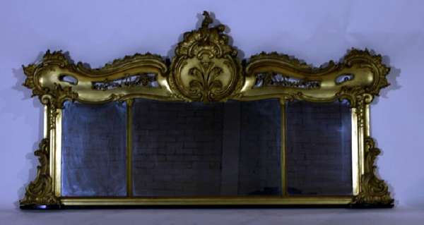 A scallop carved giltwood triptych overmantel mirror
