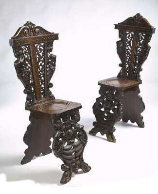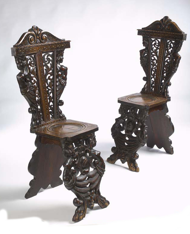 A pair of 19th century Italian carved walnut hall chairs