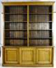 the projected moulded cornice over two banks of five shelves, three panelled sliding doors raised on plinth base