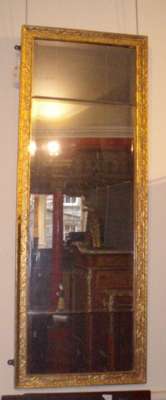 of rectangular form, the channelled frame carved in bas relief with scrolls and stiff leaf, with an inner border of bead and reel enclosing three hand-cut bevelled plates