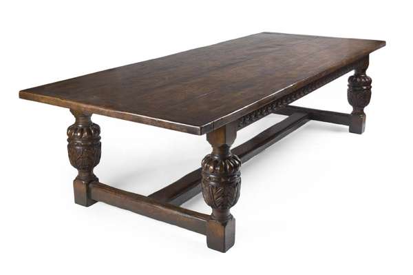 A large 17th century style oak and elm refectory dining table