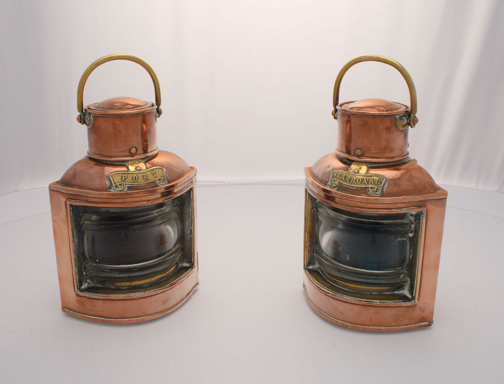 A pair 19th century small copper and brass ships lamps by Sherwood, Birmingham