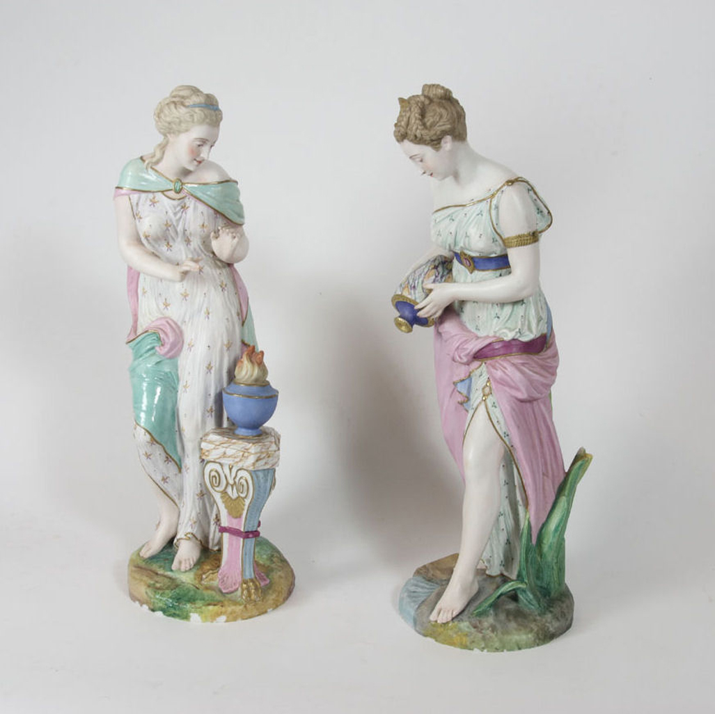 each painted in gilt and polychrome on naturalistic base, with monogram mark, 41cm high and 42cm high (2)