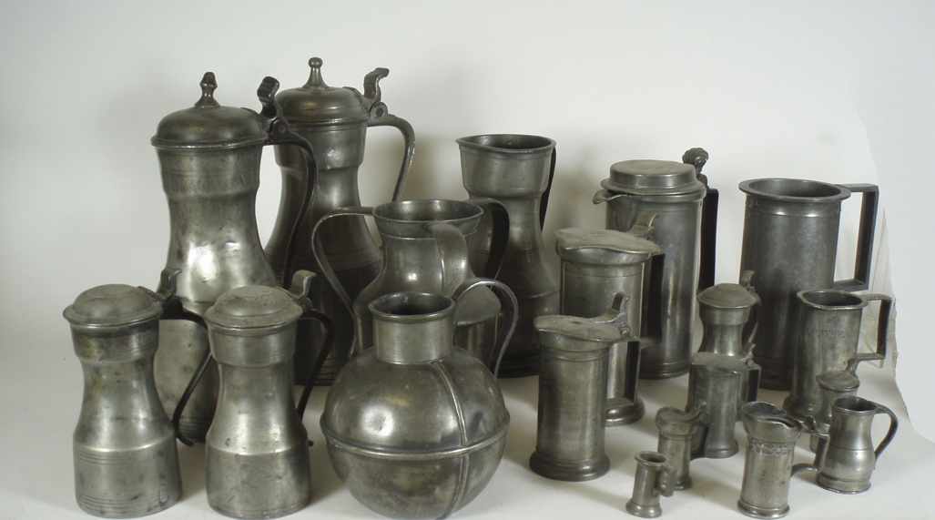 A group of 19th century pewter ewers and measures