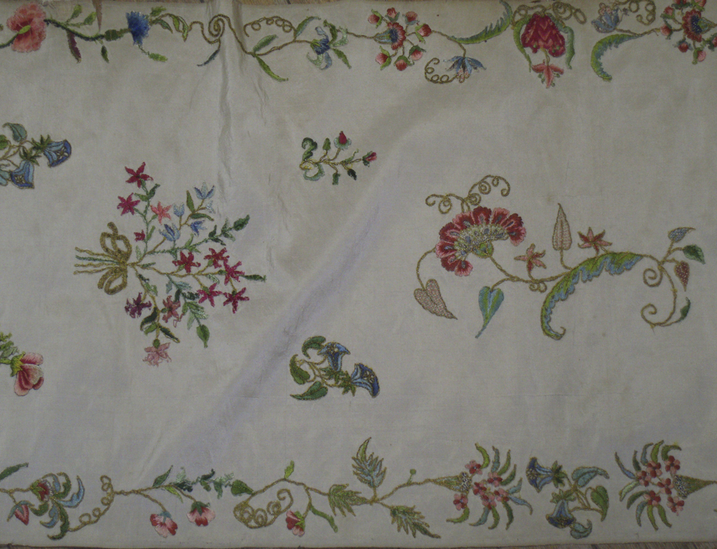 decorated with floral motifs; and a late 19th century Arts and Crafts embroidered shawl, decorated with flowers (2)