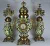An early 20th century gilt and ceramic clock garniture