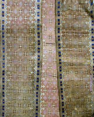probably British or Irish, each with camel field with allover rosette and lozenge pattern, within indigo rosette and lozenge border, various lengths (4)