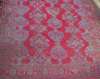 the red field with five columns of purple palmettes and cruciform motifs, within red rosette and diagonal vine border between purple and red bands