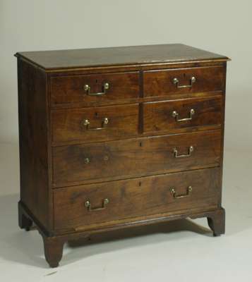 the moulded rectangular top over four short drawers and two long drawers, raised on bracket feet