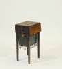 the reeded top over three shallow drawers, the work box simulated as a basket, raised on square tapering legs