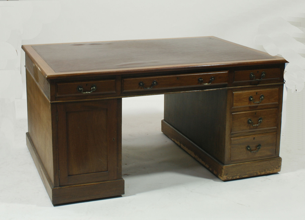 A late Victorian mahogany twin pedestal desk