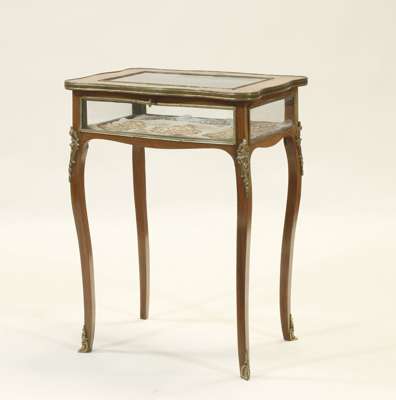 An Edwardian brass mounted kingwood bijouterie cabinet