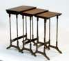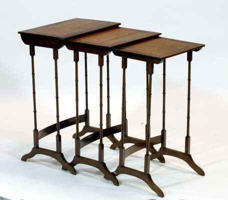 each with cross banded top, raised on ring turned legs with down swept feet (3)