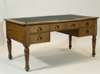 the moulded rectangular top with skiver over a long drawer flanked by two short drawers raised on baluster turned legs