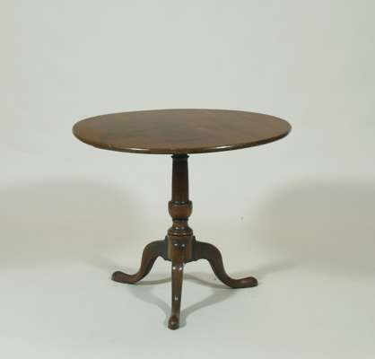 the circular top above turned tapering column with tripod cabriole legs and pad feet
