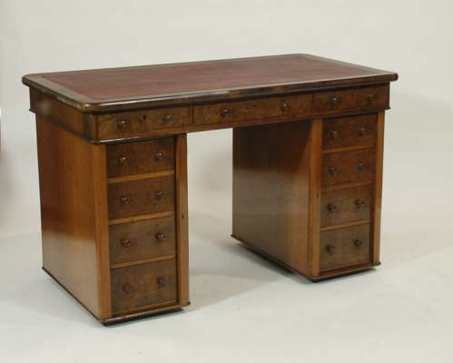A Victorian burr walnut twin pedestal desk
