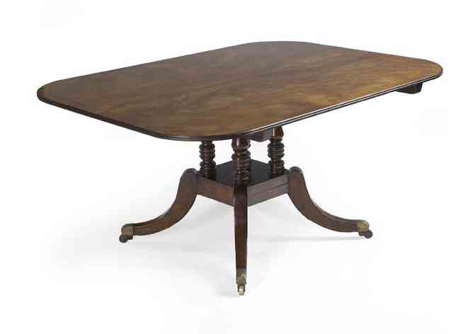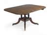 the later rounded rectangular inlaid tilt top over four ring turned supports and down swept legs terminating in reeded brass caps and castors