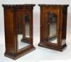 each with castellated cornice over frieze panel with carved rosettes, arched mirrored door enclosing adjustable shelves, raised on moulded plinth base (2)