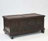 the moulded lid over four wave carved panels, on plinth base, raised on carved block feet
