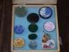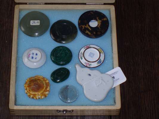 including a small circular enamel painted tray, in puce with a landscape, blue character mark to base (10)