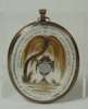 of oval form, decorated with an urn with inscription commemorating the deaths of John and Hannah Marsden in 1800 and 1807, under a willow tree constructed out of hair, with inscription to border, in a gilt frame, with glass to front and back