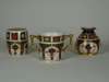 each in the Imari palette with printed marks, comprising: a vase, date code 1987; a goblet, lacking date code; a small vase, date code 1918; a twin handled loving cup, date code 1975; two lighters with covers, date codes 1968 and 1974; and two other lighters, date codes 1968 and the other lacking date code (8)