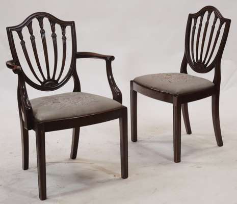 A set of sixteen mahogany Hepplewhite style shield back dining chairs