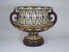 of circular inswept form with scrolling handles, decorated with floral motifs, with printed marks