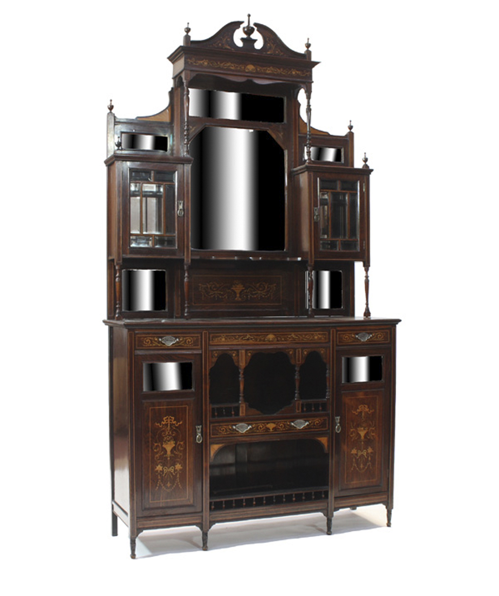A Victorian floral inlaid rosewood mirror back chiffonier