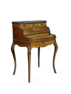A late Victorian rosewood and floral marquetry decorated bureau de dame
