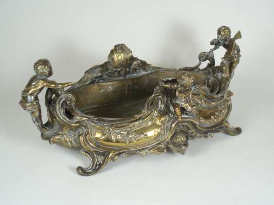 of shaped oval form with putti shaped handles and scrolling feet, lift out drip tray