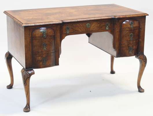 An Edwardian Queen Anne style walnut kneehole dressing table
